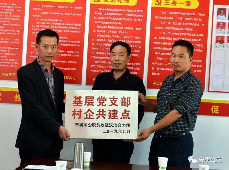 (市公交公司黨委副書記錢萬輝和市水務(wù)集團(tuán)公司總會計師陳世安共同為“基層支部村企共建點”授牌)