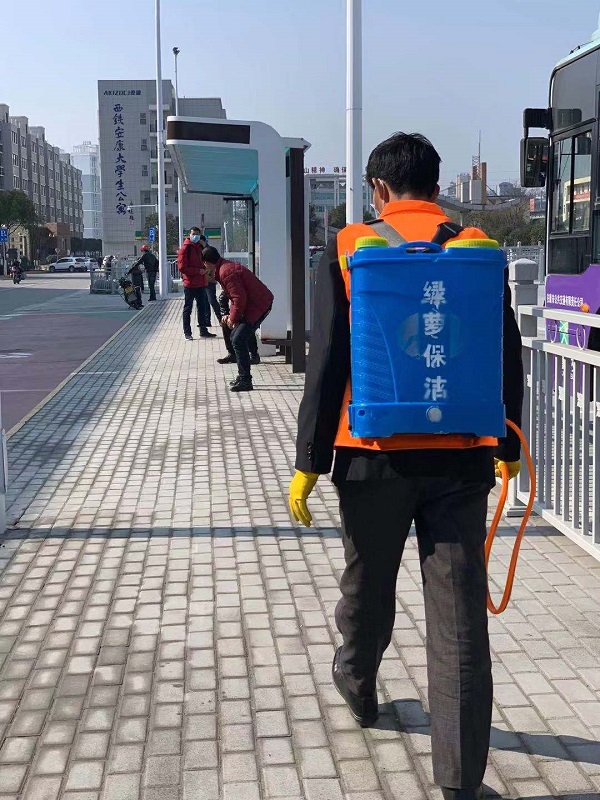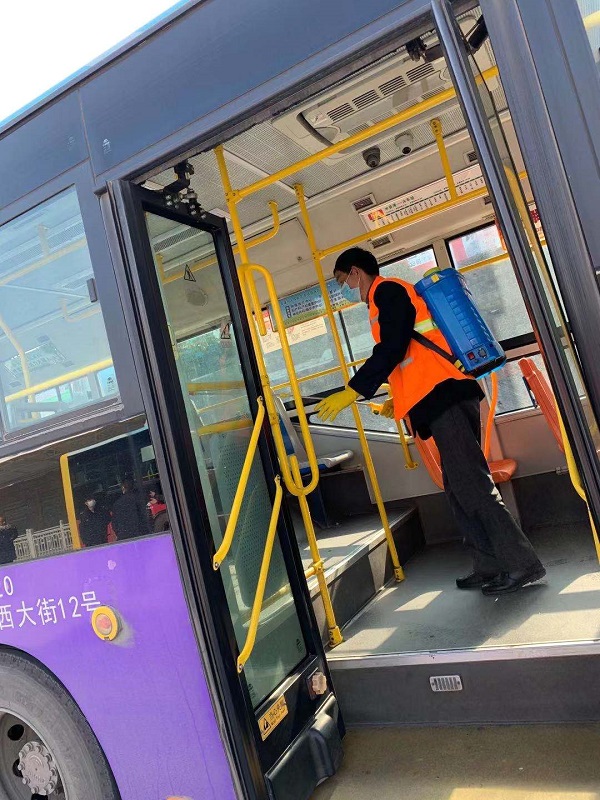 安排專人對公交站臺、車輛內(nèi)部進行消殺滅菌工作